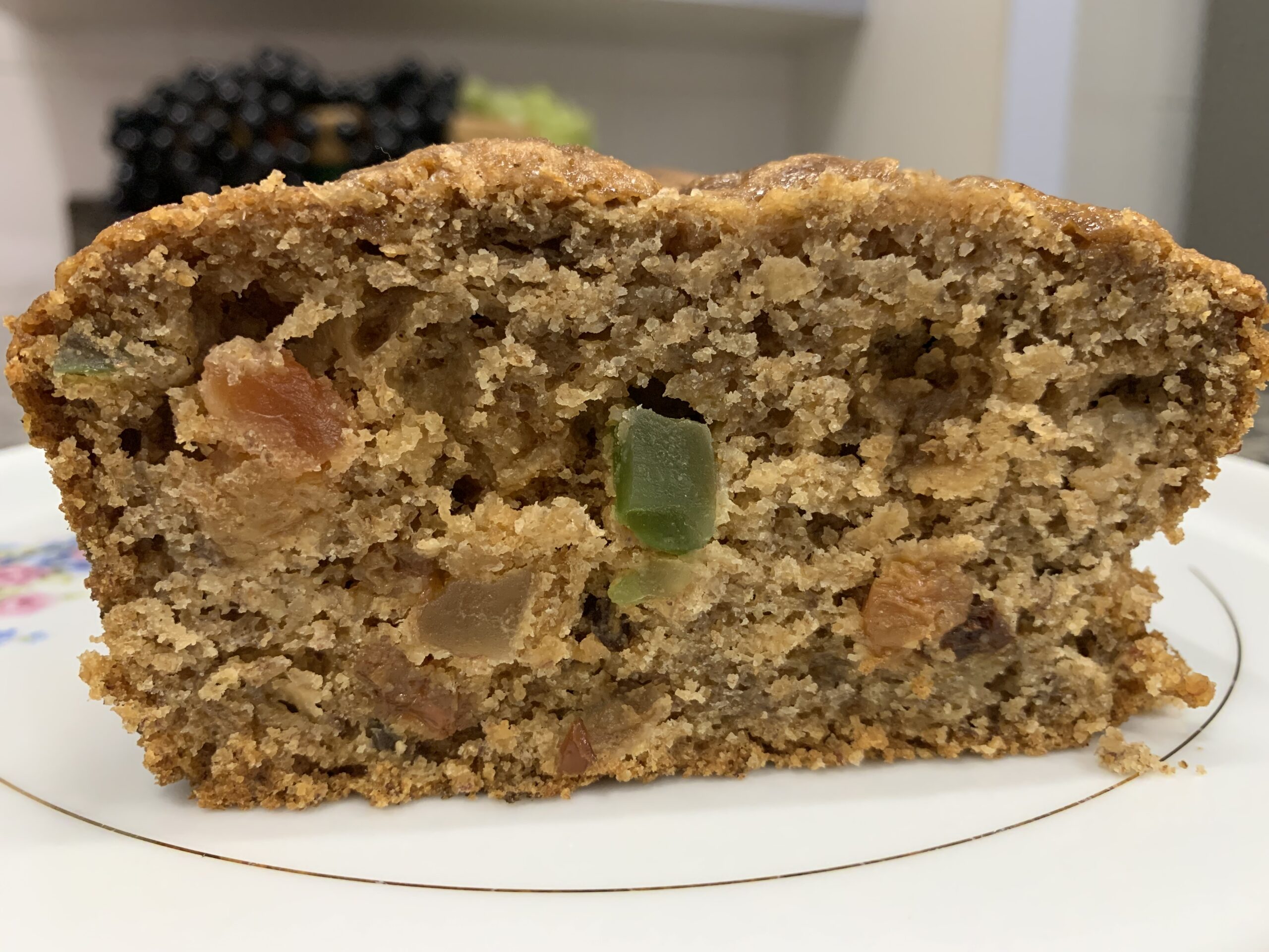 Pão de banana com frutas cristalizadas. Ótimo em qualquer ocasião.