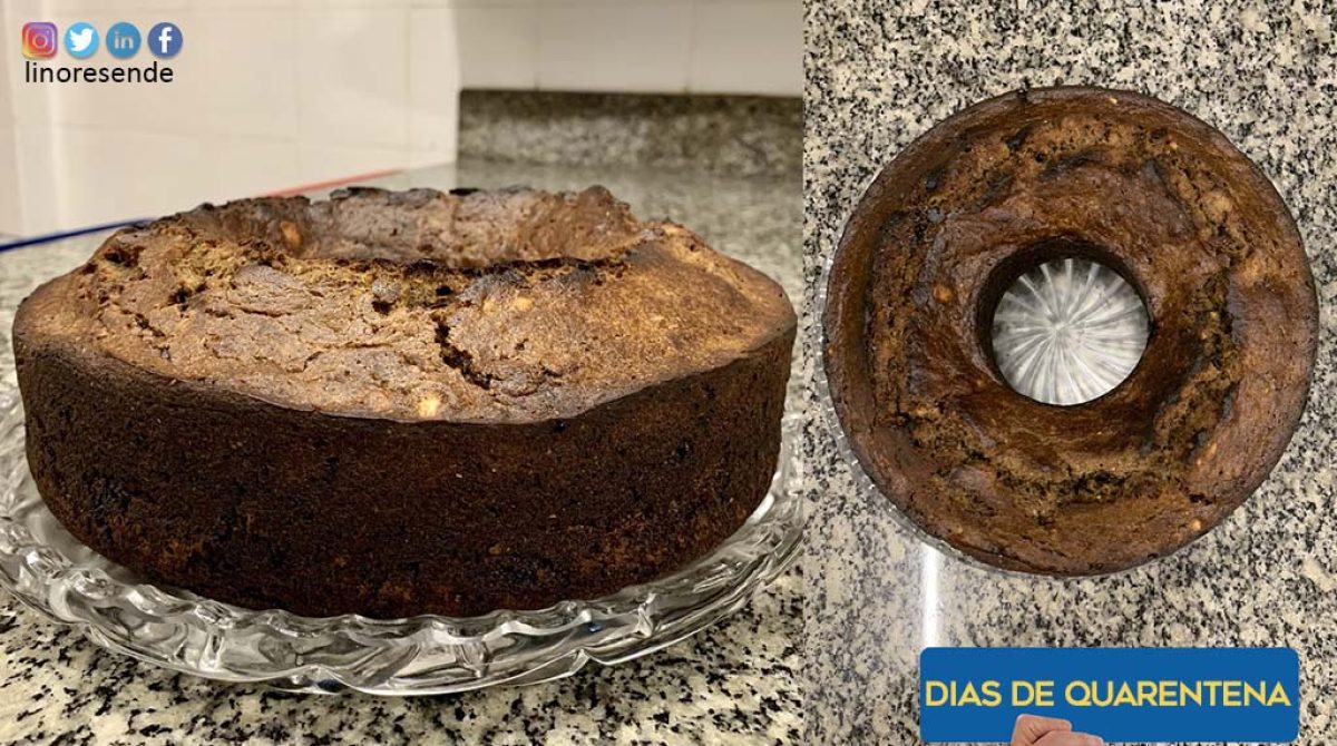 Quarenta minutos depois, ele estava pronto. Ficou bonito, mas ainda restava saber se ficou gostoso. Demos – eu e minha esposa – um tempo para que ele esfriasse e, já no final da tarde, sentamo-nos na varanda para tomar o nosso café e apreciar o bolo. Quer saber? Ele ficou muito bom. Foi um experimento vitorioso e no meu horizonte já existem outros bolos.