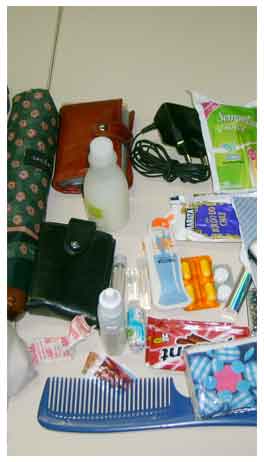 Falou na minha bolsa, atingiu meu tendão de Aquiles, Lino! Mas sou organizada, não levo nada que não precise: tenho minha necessaire, onde guardo meu estojo com batom, pente, escova e pasta de dente, linha e agulha, lixa de unha, compridos pra dor de cabeça e gripe. Fora da necessaire, tenho a carteira, celular, MP4 (sem ele não sou ninguém), caneta, bloco, óculos de sol e a revista que mais gosto: Gloss (ela é em formato de bolsa, pode?).