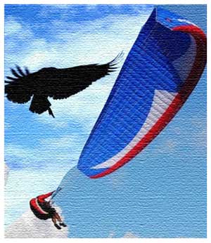 É o que fazem, também, quem voa de parapente. Após a decolagem, aproveitam-se das térmicas, sobem, planam, dão voltas levados pelo vento até decidirem que é hora se voltar. E o curioso é que, Ã s vezes, urubus e humanos voam praticamente juntos, com os pássaros em concentração bem maior que os humanos.
