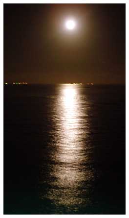 É este o caso de alguém que, depois, se tornou muito próxima. Um dia, passando à beira praia no início do anoitecer e olhando mais ao longo, via-se os navios que aguardavam vez no porto que começavam a acender suas luzes. Vendo a cena, que se repete diariamente, não é fácil imaginar o que alguém de fora da praia poderia pensar, principalmente se chegasse à noite e, do outro lado, visse a iluminação.