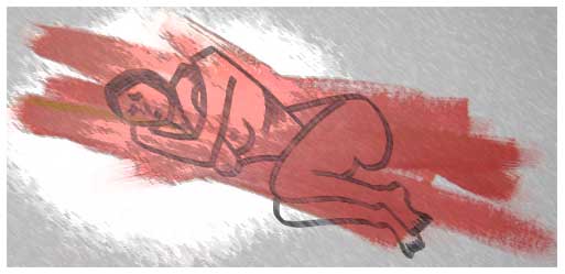 De lado e deitado(a) em cima de um braço e encolhido!!! Será que seria uma combinação dessas duas posições? Sinistro, héin?