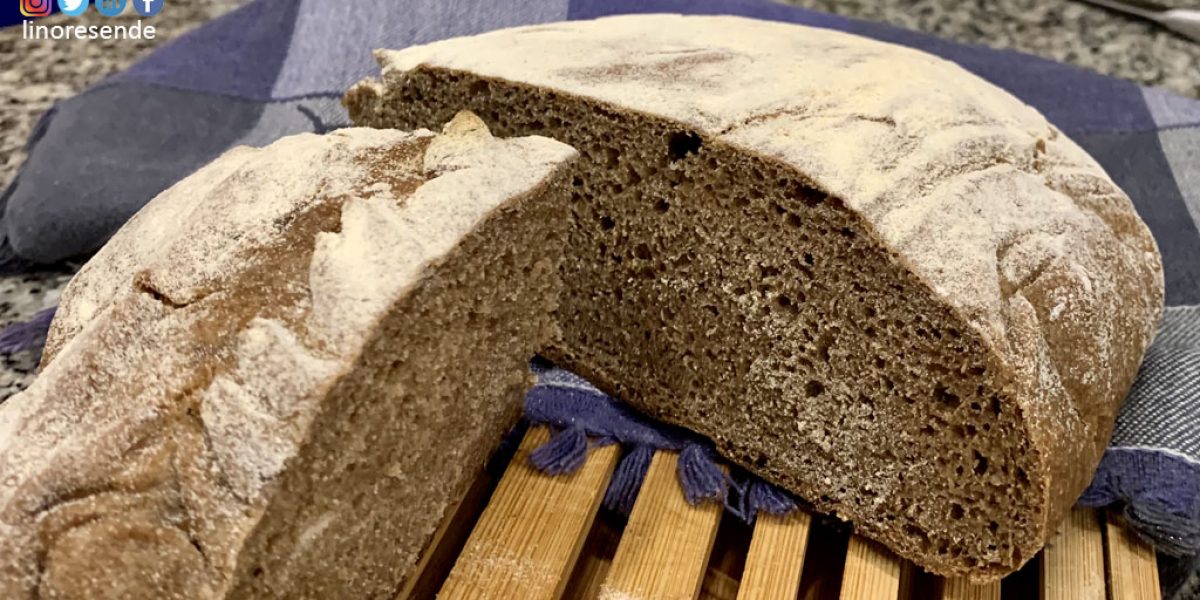 Já tento percorrido um bom caminho, decidi que era hora de tentar fazer um pão cuja base era farinha de centeio. Usei a internet para pedir a farinha. Ela chegou, procurei uma receita em que a base fosse esse tipo de farinha e fui experimentar. Quem faz pão com alguma frequência sabe que receitas são únicas, não tanto pelo seus ingredientes, mas pelo desenvolvimento da massa, sempre diferente, dependendo das técnicas usadas, do desenvolvimento e fermentação e da temperatura ambiente e do forno.